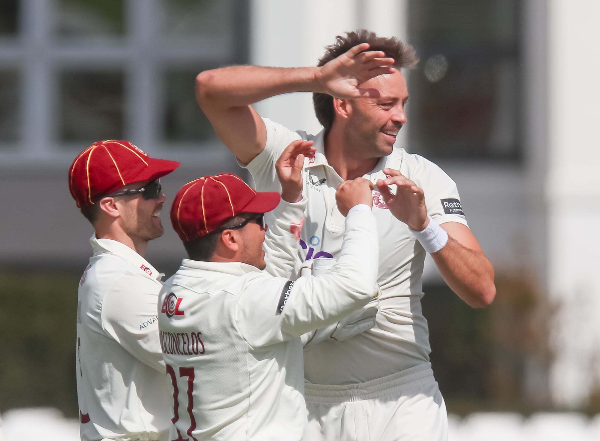 Kent finally offered some resistance on day three, but they suffered a double blow late on; James Sales removed Sam Northeast for 69, thanks to a brilliant diving catch by George Bartlett at leg gully, and Calvin Harrison then bowled night-watcher Matt Milnes for a duck.